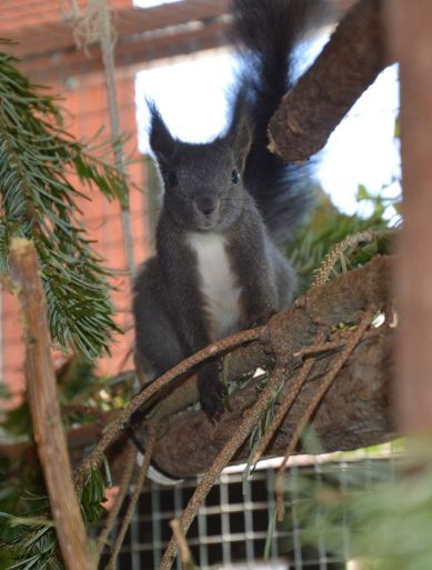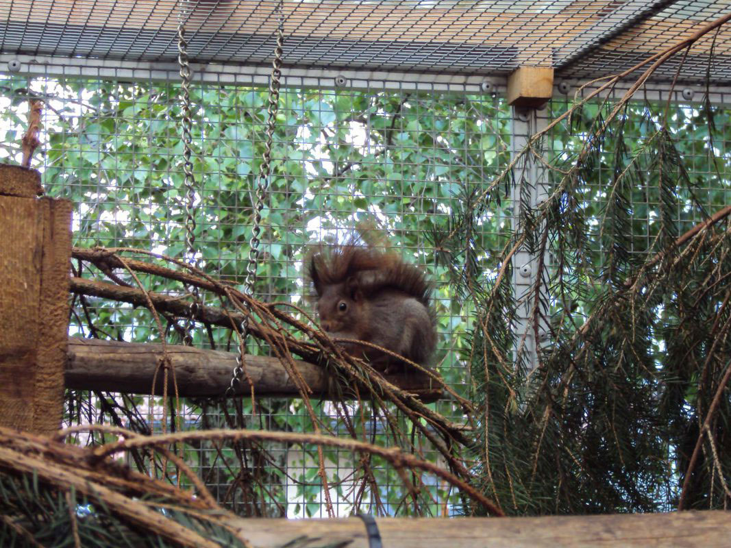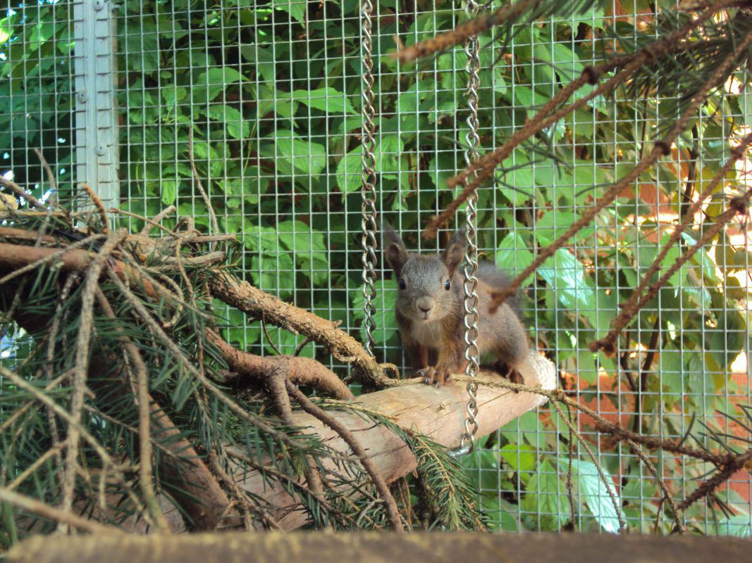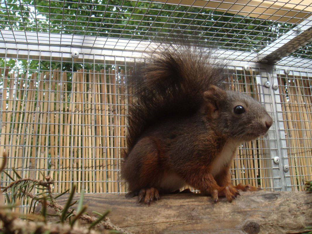 In der Aussenvoliere leben dauerhaft zwei Eichhörnchen, die aufgrund von Handicaps nicht mehr ausgewildert werden konnten und zwei Rothörnchen, welche wir aus ungeeigneter Haltung übernommen haben.