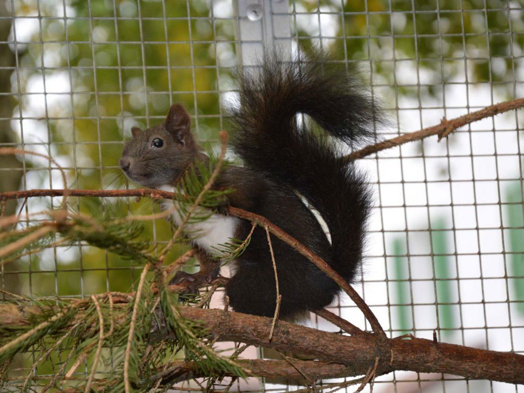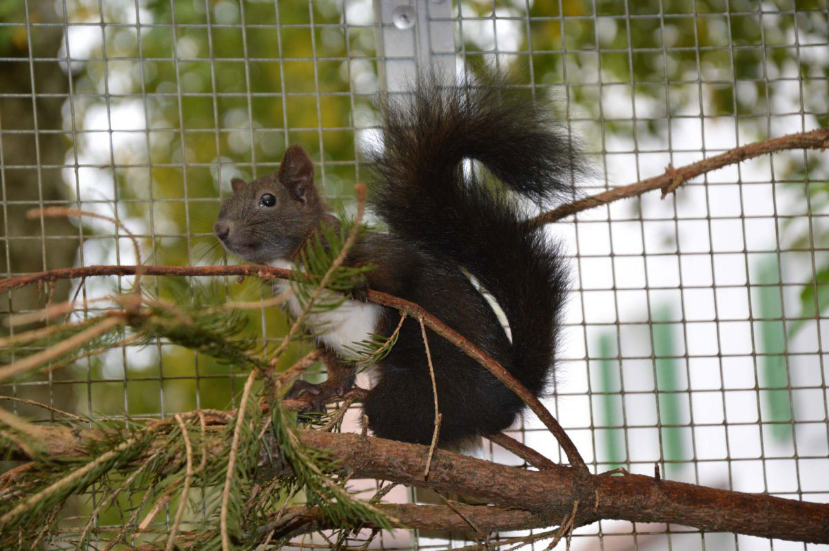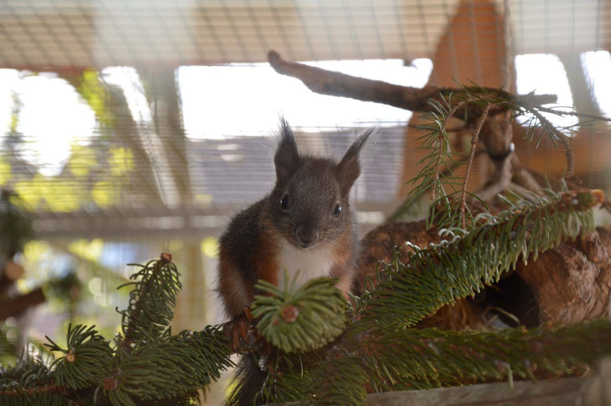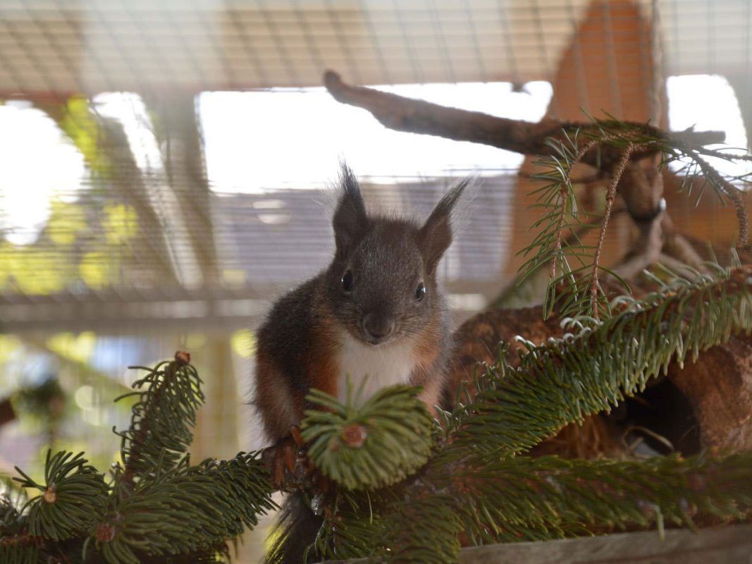 In der Aussenvoliere leben dauerhaft zwei Eichhörnchen, die aufgrund von Handicaps nicht mehr ausgewildert werden konnten und zwei Rothörnchen, welche wir aus ungeeigneter Haltung übernommen haben.